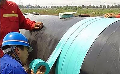 纏繞粘彈體防腐膠帶:將粘彈體防腐膠帶有黏性的一面纏繞在基體上,不要用力保持空氣流通,輕輕按壓膠帶時緊密地纏繞在基體表面。重疊纏繞:防腐膠帶纏繞時重疊10mm、管道預(yù)制涂層重疊50mm、焊縫處至少重疊30mm。在施工之前不要剝離粘彈體防腐膠帶上的隔離膜或隔離紙,在管道上邊纏繞邊剝離。第一圈垂直纏繞管道一周,之后連續(xù)不斷的進(jìn)行螺旋纏繞,結(jié)束的時候也要垂直纏繞管道一周。
