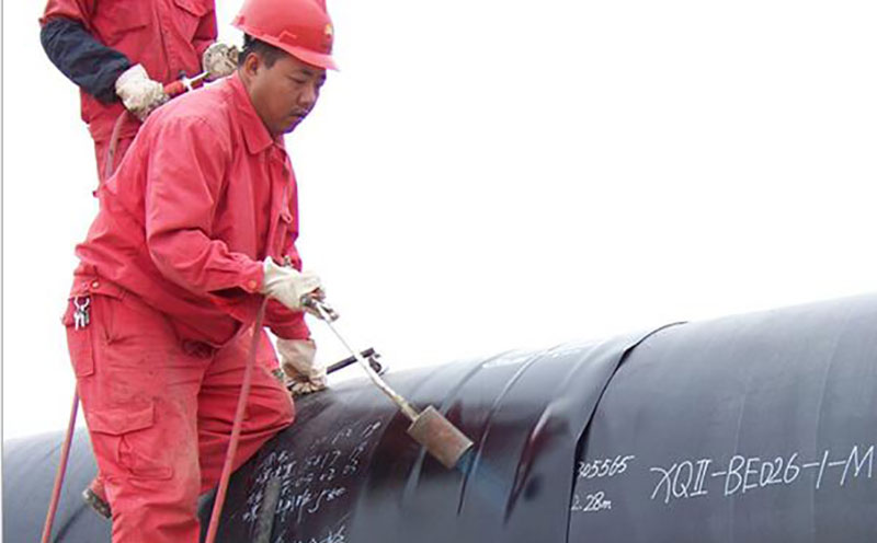 “濕膜法”施工即在底漆涂刷完成后立即進行熱收縮補口帶的施工,“干膜法”施工即在底漆涂刷完成并實干檢測后再進行熱收縮補口帶的施工。